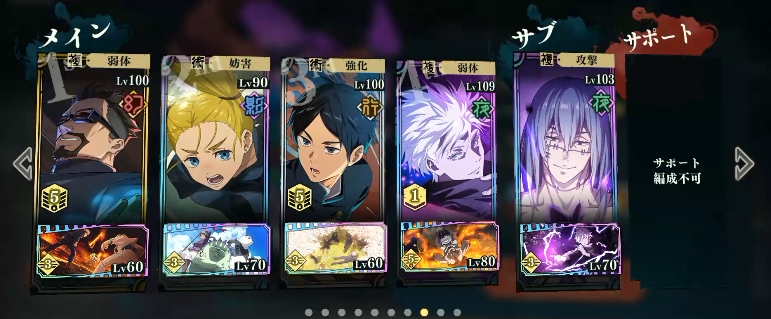 在40层之前的关卡中,可以选择一个更为泛用的配队,例如結木海斗、狗巻棘、花御、五条悟以及对应弱点属性的输出手,結木海斗以其坚韧的防御和出色的控制能力成为队伍的坚实后盾,狗巻棘则有着灵活的攻击方式和高效的输出能力,花御作为辅助角色,能够为队友提供减伤和增益效果,五条悟依然是队伍中的主要输出,而对应的弱点属性输出手则根据敌人的弱点进行选择,可以最大化伤害效果。
