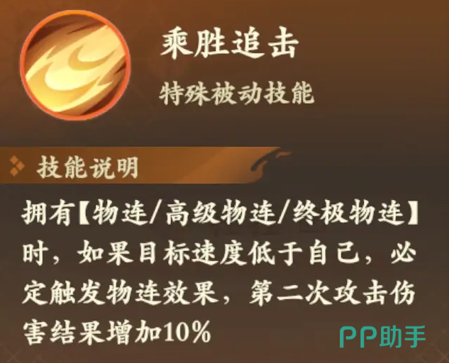乘胜追击:在自身拥有物理类的连击技能时,如果攻击的敌人速度低于白猿精灵本身的话,那么这个连击攻击是百分百会触发的,并且弟二次攻击并不会伤害降低,反而会增加后续的伤害,这个属于一个特殊的被动技能,大家可以在释放之前,查看其中敌人的攻击速度!
