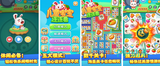 《儿童宝宝连连看》是非常养眼的一款连连看类型的游戏,它需要玩家在特定的时间当中,尽快把相同的水果蔬菜或者是食物连接在一起进行消除,速度越快,那么获得的积分就会越高。它同样也有很多模式,非常值得尝试。