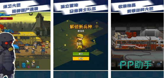非常经典的单机僵尸手机游戏,为玩家提供割草欢乐面,其中又加入塔防元素,面对僵尸的入侵,为避免这些僵尸围攻你的大巴车,吃掉大巴车当中健康的幸存者,一定要召集勇士队伍派勇士前去作战,不择一切手段将僵尸打败。游戏中除了射击枪械之外,还有投掷武器以及载具等等,只有拥有钢铁般意志,才有机会征服各类型僵尸。