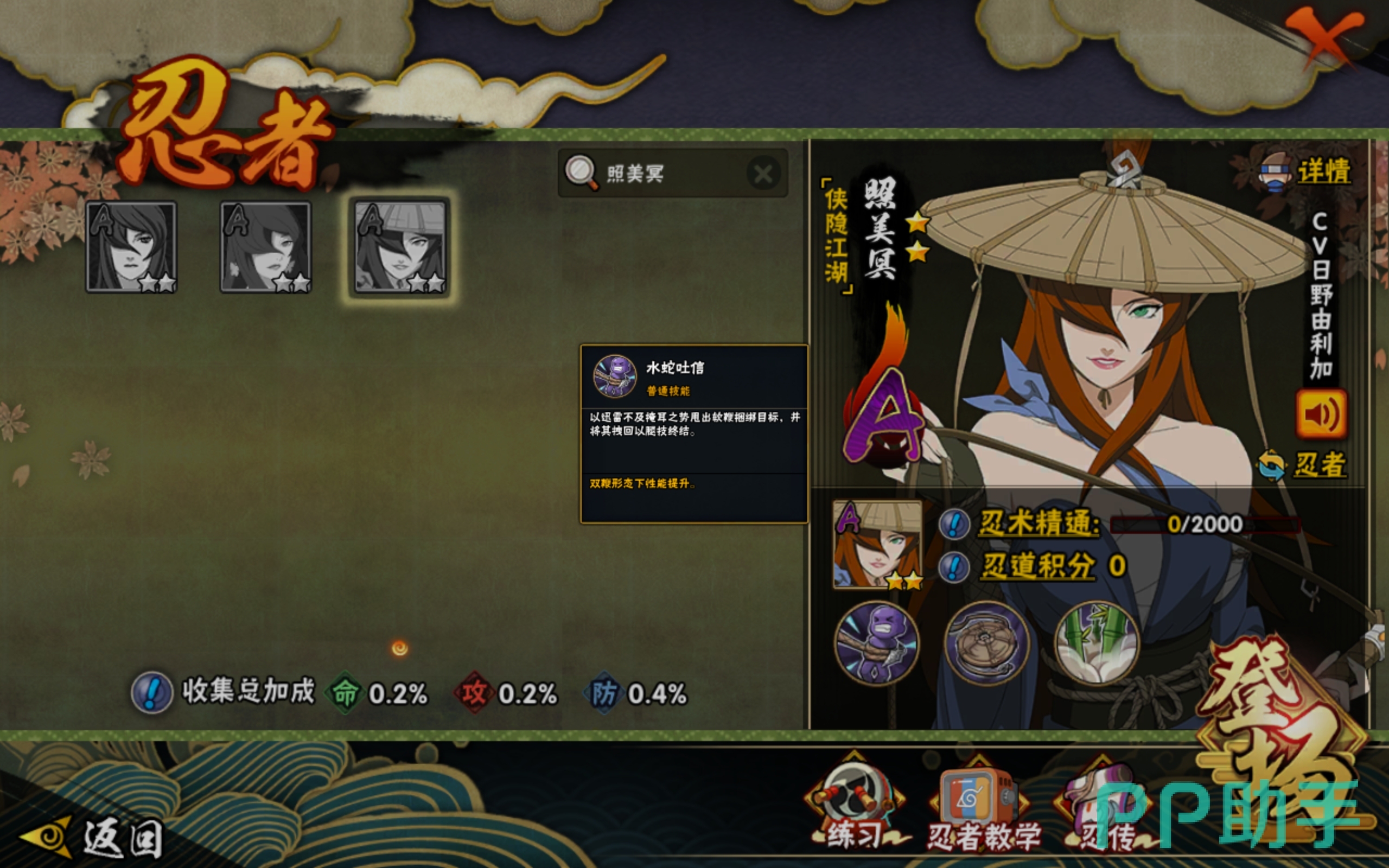 以上就是火影忍者手游照美冥侠隐江湖怎么样,这个忍者拥有很高的机动性,在大部分场景都能拥有很好的发挥,此外,极高的基础伤害,就算不使用技能也可以痛击敌人。