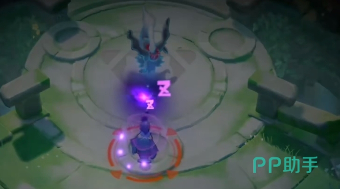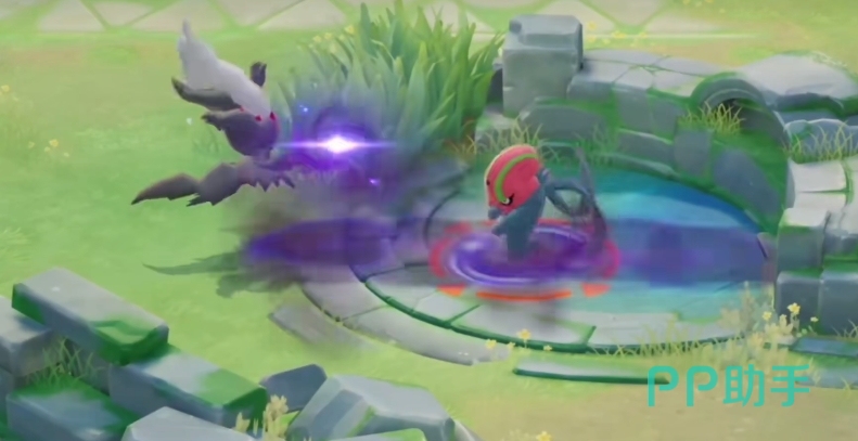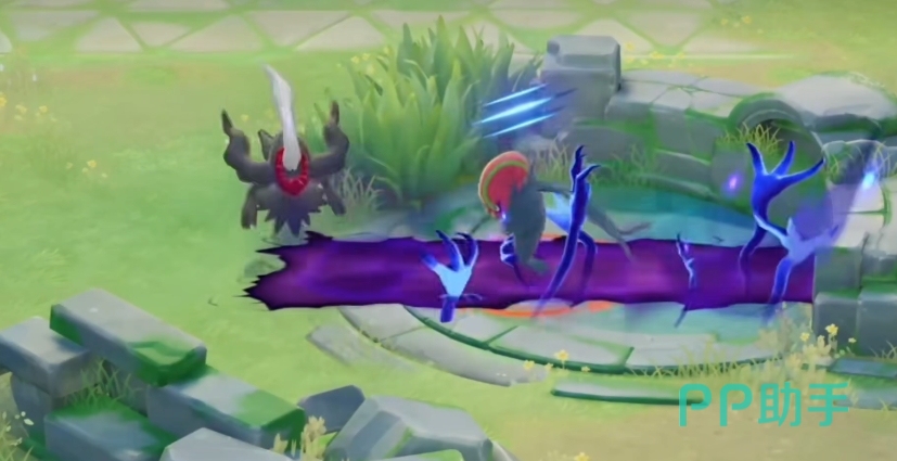 3、技能二暗黑洞:对范围内敌方宝可梦投掷黑暗之秋,不仅能对敌方造成伤害还会有标记效果,对有标记的宝可梦造成伤害时,在消除标记的同时让其陷入睡眠。强化技能后还能再加一个减速的效果。