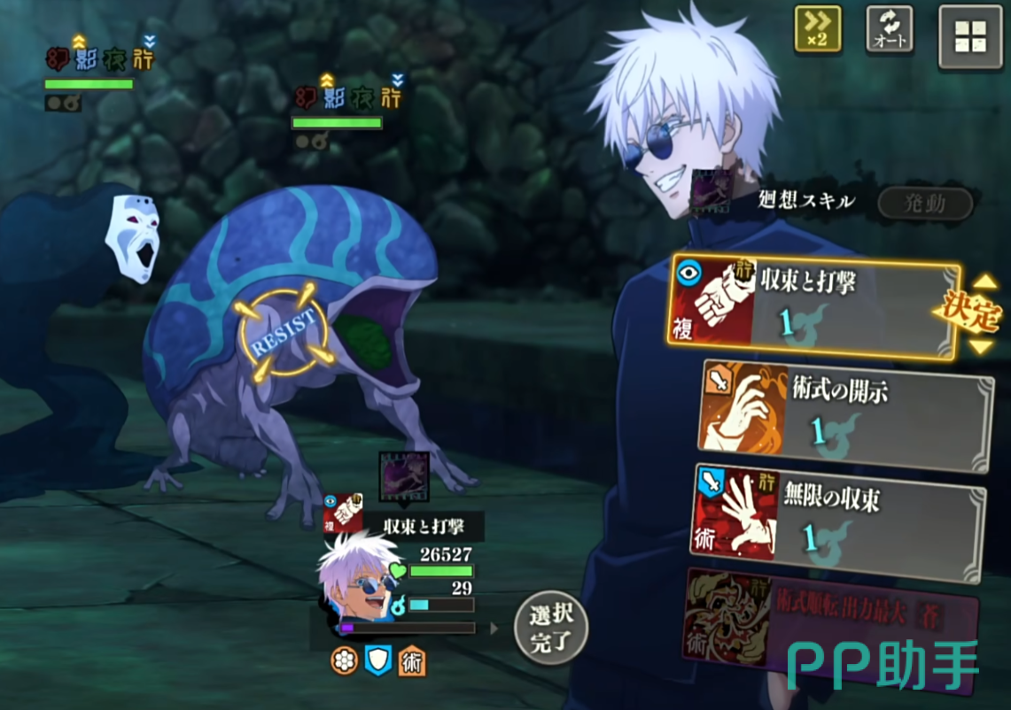 首先五条悟的一技能收束的打击可以对单个敌人造成体术和术式的双伤害,并赋予敌人挑衅效果持续一个回合,不过这个效果的概率只有百分之三十五,但是一技能对必杀技的能力提升会比其他的技能要多。