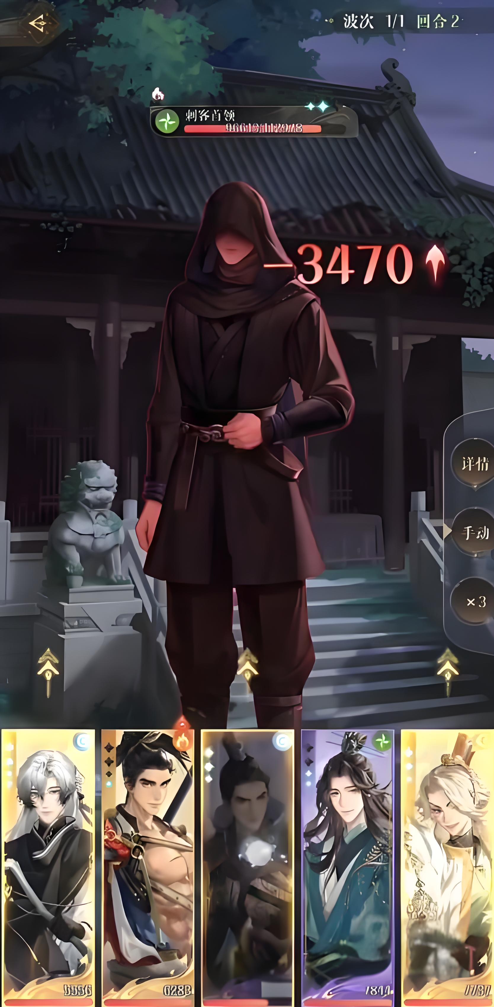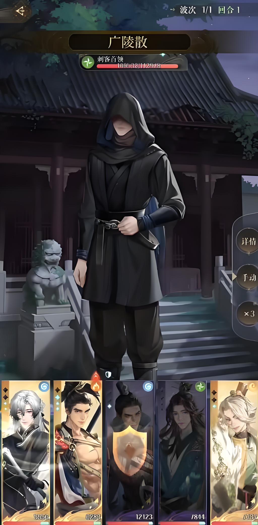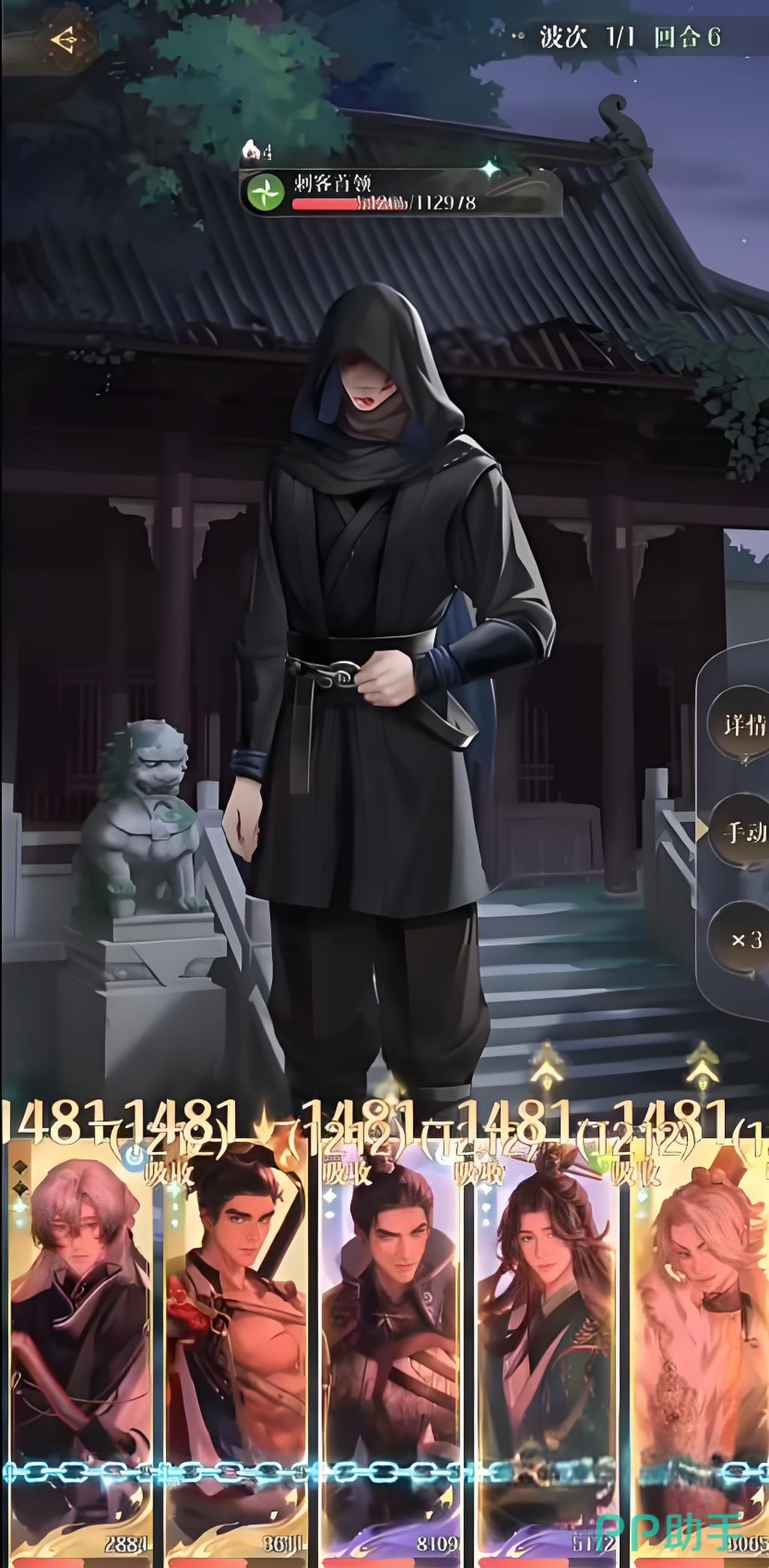 小编推荐阵容是:王粲+颜良+吕蒙+陈登+杨修。王粲是队伍中的核心,必带大招能量-1,还有加个护盾。第一回合上陈登大招,辅助吕蒙变身。然后队伍中血量最低的密探王粲要开护盾下拉防御。第二回合王粲先出大招,其他密探有大招就出。但是颜良的盾要留着。第三回合刺客首领技能点满,要放大招会锁定攻击血量最少的王粲,这个时候开颜良的盾抵挡部分伤害,其他人下拉防御。第四回合吕蒙和杨修的大招点集满,全部输出抢伤害,第六回合都下拉防御,等待吕蒙灼烧叠加的伤害越来越高,给刺客首领致命一击。