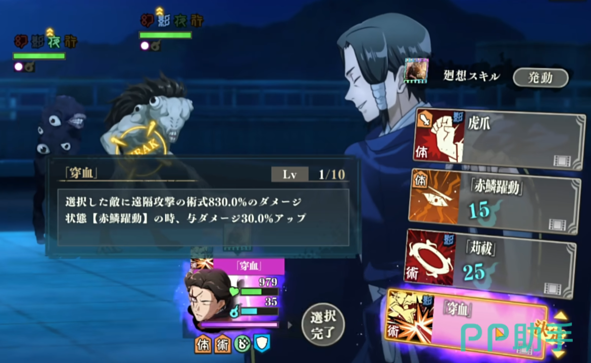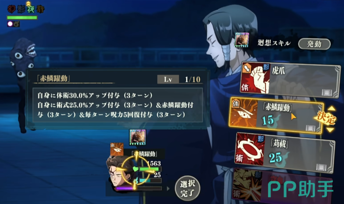 加茂宪纪的二技能赤鳞跃动可以让他自身的体术伤害和术式伤害的数值提升,并赋予自身赤鳞跃动的状态,这一技能需要消耗十五点咒力,但是每个回合都可以恢复五点咒力,这些效果都可以维持三个回合。所以大家在实战中时,最好先使用二技能,这样可以让其他技能的输出能力都得到提升。