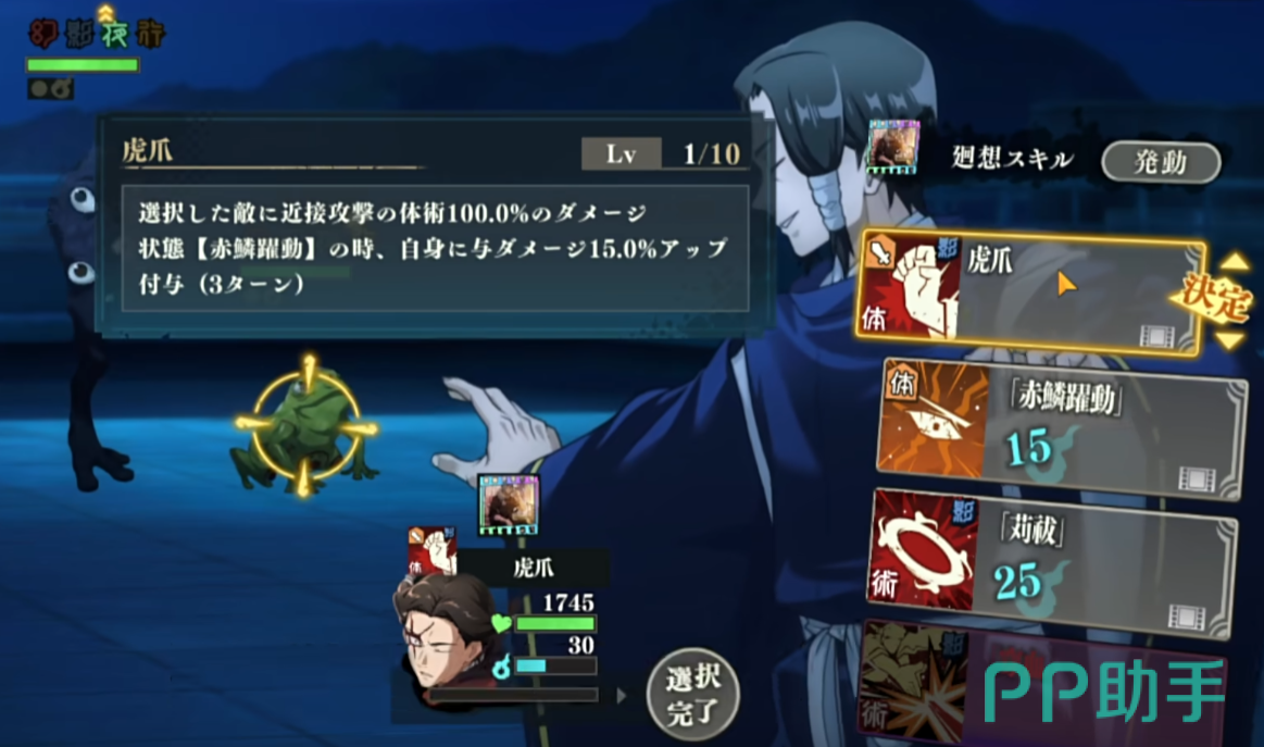 加茂宪纪的一技能可以对敌人造成近距离的体术伤害,但如果是在赤鳞跃动状态下的话,就可以让这一技能的伤害提升并且持续三个回合。