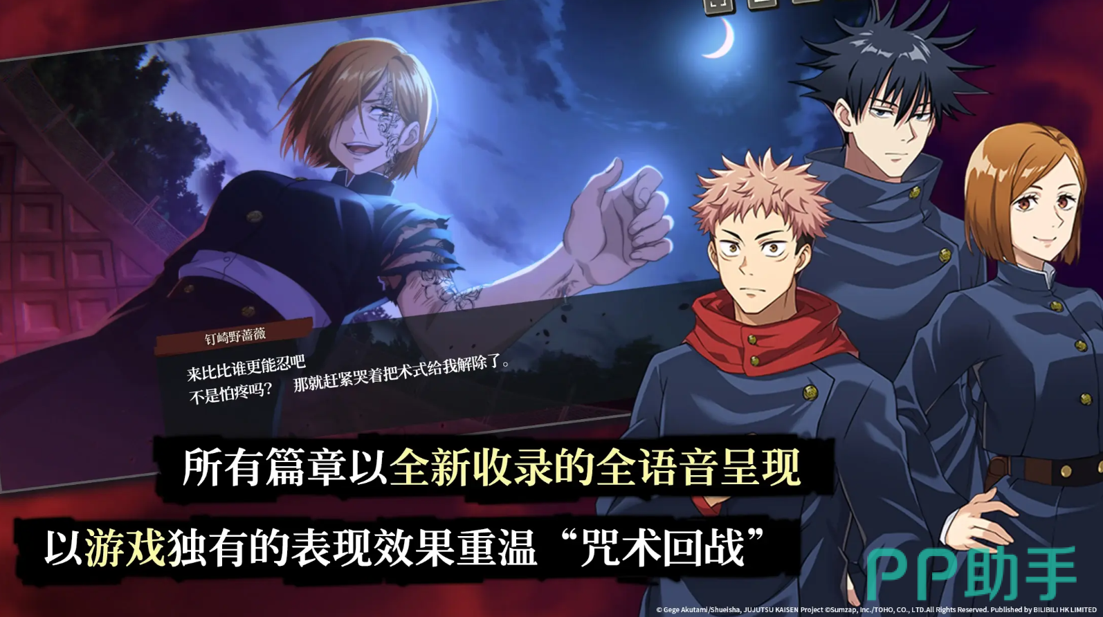 首先,咒术回战的开发商是Sumzap,并由哔哩哔哩代理发行,该游戏采用的是经典的角色扮演玩法,也采用了回合制的指令式战斗,在游戏中各位玩家可以操控自己喜欢的咒术角色进行作战,每一位角色释放技能时还有原版配音。