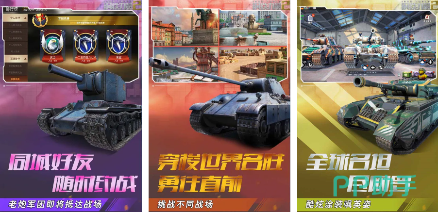 玩家可以驾驭经典复刻的坦克,在多样化的战场与风景如画的小镇中展开激烈的战斗。游戏内含多种竞技对抗模式,每场战斗时长约为3至5分钟,节奏紧凑,玩家能自由选择三辆坦克,随时加入惊心动魄的炮火交锋。此外提供了来自多个国家的丰富坦克种类,结合逼真的画面效果,让玩家仿佛亲身置身于硝烟弥漫的真实战场。