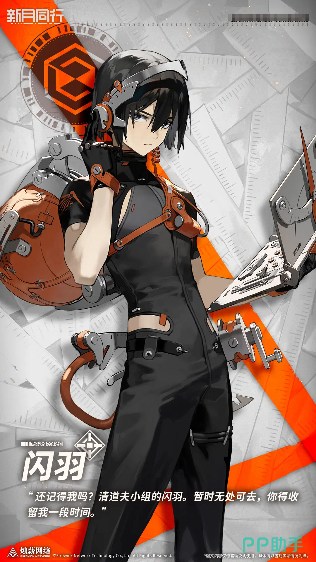 闪羽是超管局的四星角色,虽然品质不是很高,但是技能效果不容忽视。普攻“挥镰折钩”,可以基于自身攻击力对目标造成特殊伤害。战术技能“标靶测定”,对选定敌人添加“碰炸引信”,持有该效果的目标受到伤害时,基于她的攻击力会对该目标造成额外伤害,持有“碰炸引信”一回合以上时,此额外伤害提升,持有两回合以上时,额外伤害提升到最大。
