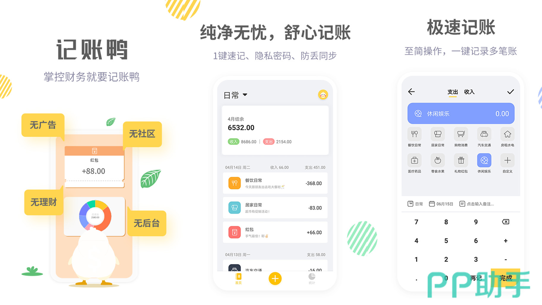 记账鸭APP是一款专业的手机记账软件,界面简约,支持一键快速记录收支并自动生成收支报告和资产账户趋势图,帮助用户轻松管理财务状况。此外,该软件还提供情景账本模板,支持多设备使用,并具备数据加密功能。