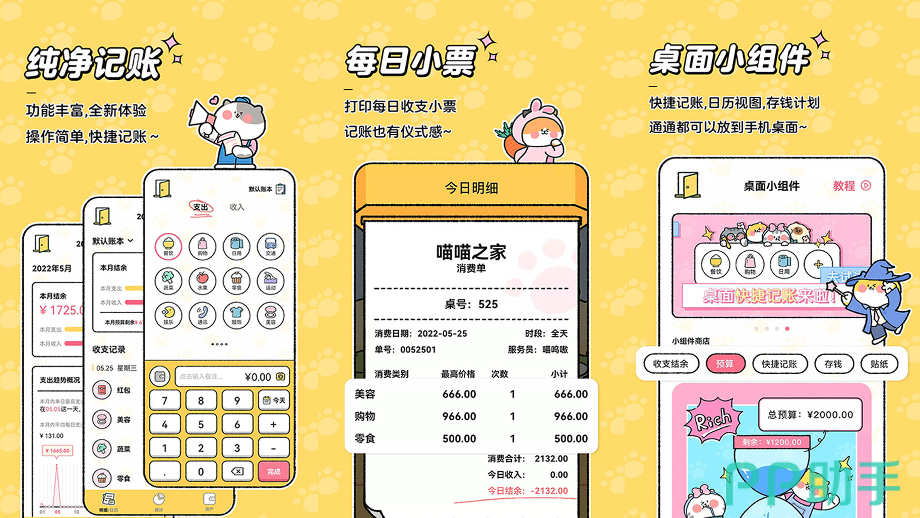 喵喵记账APP是一款以收集猫咪为主题的趣味性萌宠记账软件,风格可爱,使用方便,能够记录每次消费并自动生成账单。用户可以通过记账解锁可爱的猫咪,并通过每日签到获得更多的猫咪朋友。此外,喵喵记账还具有简单快速的记账方式和实用的账目统计功能