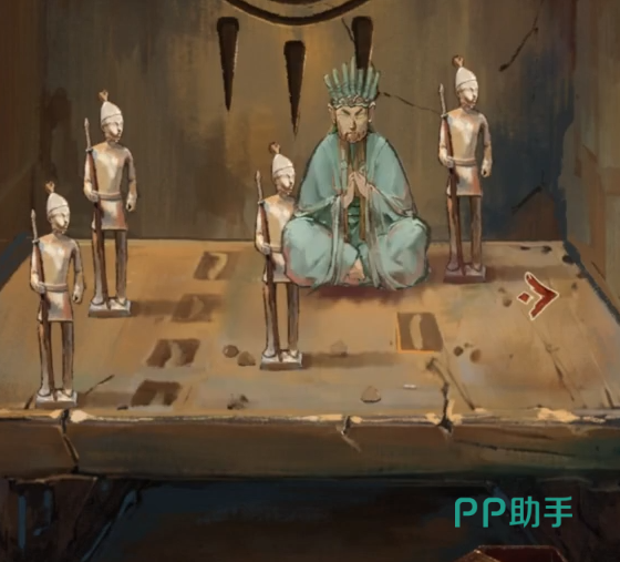 首先我们先点击正对着的眼睛,之后点击地上的笔记本,在笔记本里面有着很多信息的记录。之后来到右边,发现有一个棋盘,我们需要将棋子给正确摆放才可以。在摆放完成之后,墙上会出现一颗宝石,接着我们需要拿到宝石才可以。