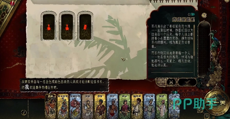 这款卡牌形式的宫廷风游戏中,玩家是可去通过不同卡牌的影响来进行战斗的,并且体验起来的效果上也非常不错,今天小编主要是来和大家说说苏丹的游戏角色,要知道该游戏中的玩法非常丰富,并且也是有着许多风格不同的任务形象和大家见面,小伙伴们如果感兴趣,那么就一起来接着往下看看吧。