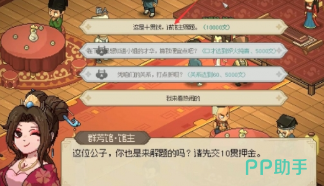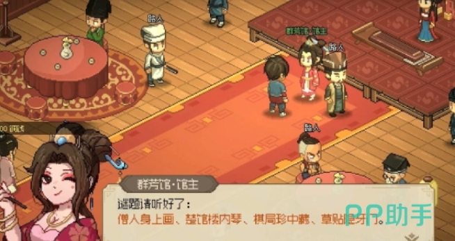 以上就是大侠立志传群芳馆谜题怎么玩的内容了,解谜的方式非常的简单,只需要根据每一句的前部分的地点和后部分的物品来结合就可以找到了,在收集的过程中也会遇到一些非常有意思的事情,每一个小任务都可以触发其他的任务,游戏中的任务非常的多,每一个任务完成后都可以获得一些奖励。