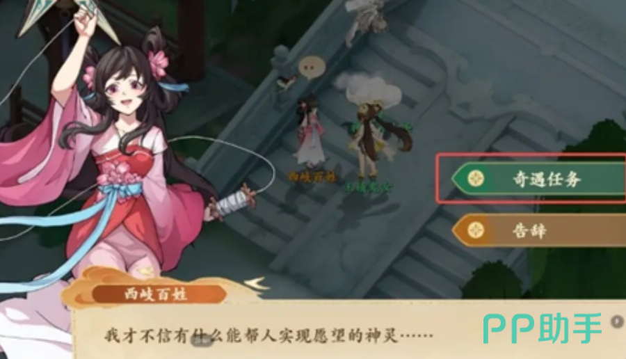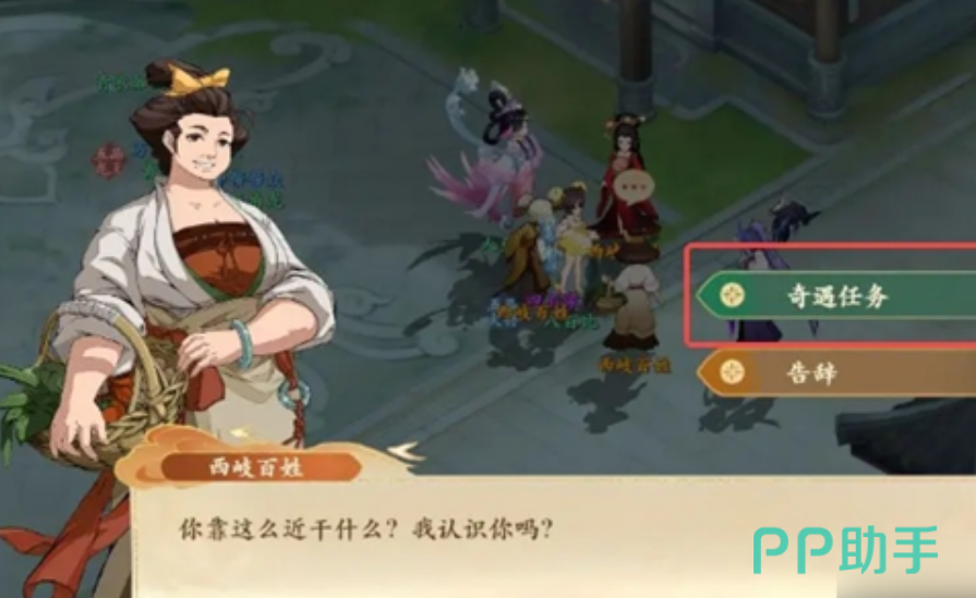 首先我们先要去西岐地图,与西岐百姓对话以领取任务。只有通过与NPC对话才能获得任务的触发。接下来任务提示玩家需要继续向上方行走,来到一个特定的阶梯位置,再次与西岐百姓对话。每一次对话都可能触发新的任务阶段或战斗。