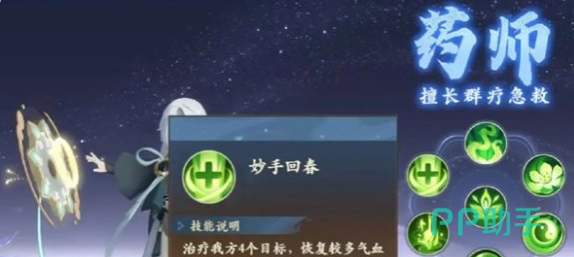 药师:加血技能可以给4个单位加血,人物等级达到75级之后还可以加血5个单位,能够在一瞬间给多个队友回复血量。在紧急的情况下就可以迅速的提升队伍的缺陷,有效避免队友血量过低而面临死亡。复活技能拉人恢复的血量明显要比医仙更多,而且在复活之后还具有免疫伤害的作用。他的天赋在受到攻击之后就可以获得1~3怒气,在战斗中还可以积累怒气,为队伍提供更多的治疗效果。