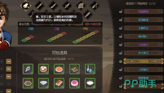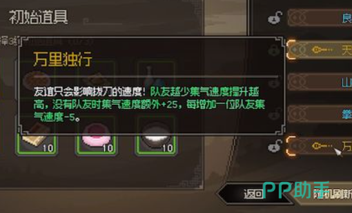 在游戏初始选择特征的时候,天煞孤星和万里独行最配,天煞孤星可以在战斗的前期迅速升级积累经验,万里独行的效果是集气速度增加25,两个特征都是非常适合独狼玩家佩戴的,在战斗中可以更快的使用技能发起攻击,在武器的选择上建议选择剑,剑的攻击距离很长且威力很大,能够最大化的发挥自身的战斗力,拳法作为备用选项,拳法的攻击力距离比较短,但是威力很大,适合前期的过渡使用。