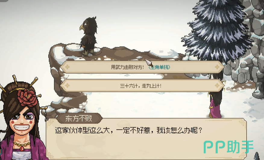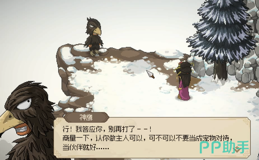 找到之后可以选择与神鹰大侠交手,第一次交手时游戏会给到两个选项,第一个选项是用武力击败对方,赢下这场战斗就会得到认可并可以入队,第二个选项是选择离开,离开之后神鹰大侠会永远的消失之后也无法再招募,所以玩家想招募的时候要做好万全的准备,确保一次性能够击败神鹰大侠,神鹰大侠的潜力非常高,几乎不用玩家的培养就能够达到非常高的武力值。