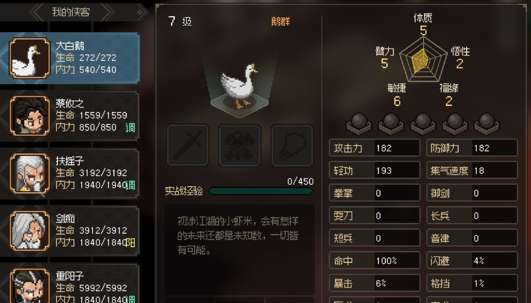 上面内容就是大侠立志传大白鹅剧情怎么触发的全部介绍了,大白鹅在无名小村的东北方向河边的位置,玩家要达到前置条件才可以激活这个剧情,提前进入战斗模式有可能会击杀无法再刷新出来,在完成这个剧情任务的时候要注意这一点。