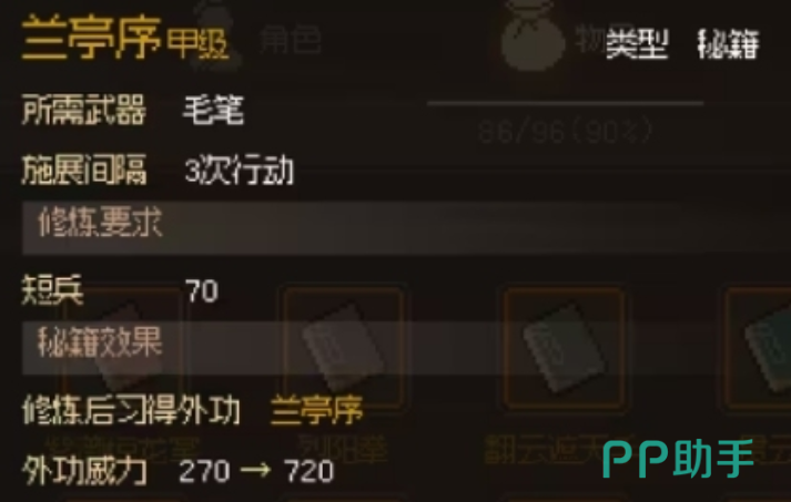 另外就是扇法,玩家可以学习扇舞春秋,想获得这个功法的话就需要加入如圣馆,让自己的字画鉴定能力提升到4级以上,等到掌握了儒十三经之后,就可以挑战4个石碑获取,匕法中比较值得学习的有刺秦要诀需要去飞瀑潭耗尽体力,然后在这里冥想就会出现心魔,战胜心魔就能获得,笔法需要去如胜馆拥有《兰亭序》字帖,然后让自己的字画鉴定达到5级之后就能获得,琴法中傲江湖比较值得学习,玩家需要在地图场景中前往妙音坊,然后顺利解救鱼微儿,然后剿灭九黎部落,就能获得。