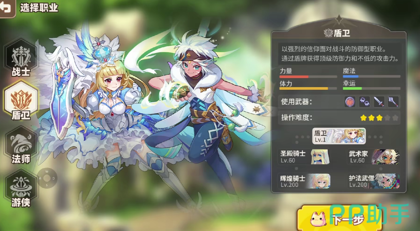 在游戏当中总共有四个主要的职业,他们分别是战士、游侠、法师、盾卫,战士有着很强的近战输出能力,基础的血量也是非常高的,虽然在前期战士并不拥有很高的攻击倍率,但是随着转职之后,战士会成为狂战士,基础的伤害倍率会翻倍,不止如此,战士一般会充当队列之中的副坦职位,是游戏中能打能抗的一个职业,操作很简单,非常适合新手玩家。