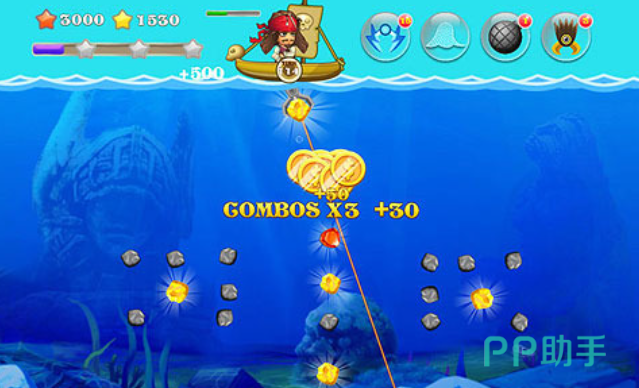 本作是款将黄金矿工和加勒比海盗主题融合的休闲小游戏,精致的海底美术风格配以滑稽的音效都令玩家印象深刻,玩家要驾驶着小船利用抓钩在海底世界抓取各种各样的奖励,宝石和黄金等虚拟货币可以兑换更多的辅助道具,游戏内容休闲性十足且卡通向的动态效果也很完美,各位黄金矿工敢不敢挑战下这款魅力十足的休闲手游呢。