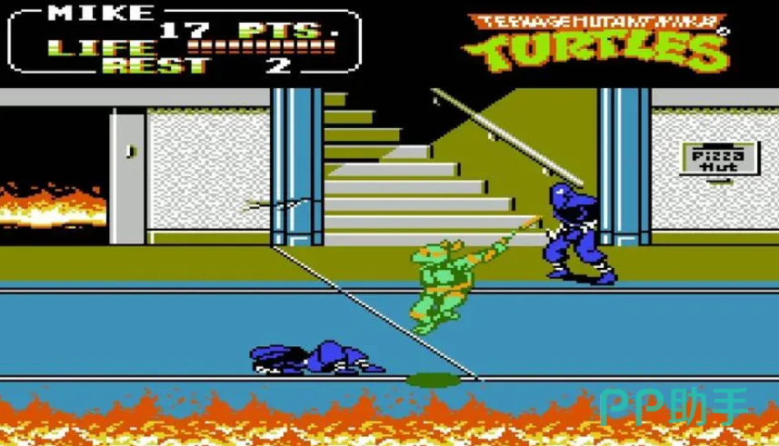 在FC时代忍者神龟2绝对是设定非常超前的双人闯关作品,游戏灵感来源于八十年代的动画“忍者神龟”,双人合作使用合击技能的设定在FC时代绝对非常罕见,打击效果也很硬核配以滑稽的BGM给人留下深刻印象,全新的战斗机制让忍者神龟的动作表现更具张力,你也安装这款FC时期跨时代的作品跟朋友一起玩吧。