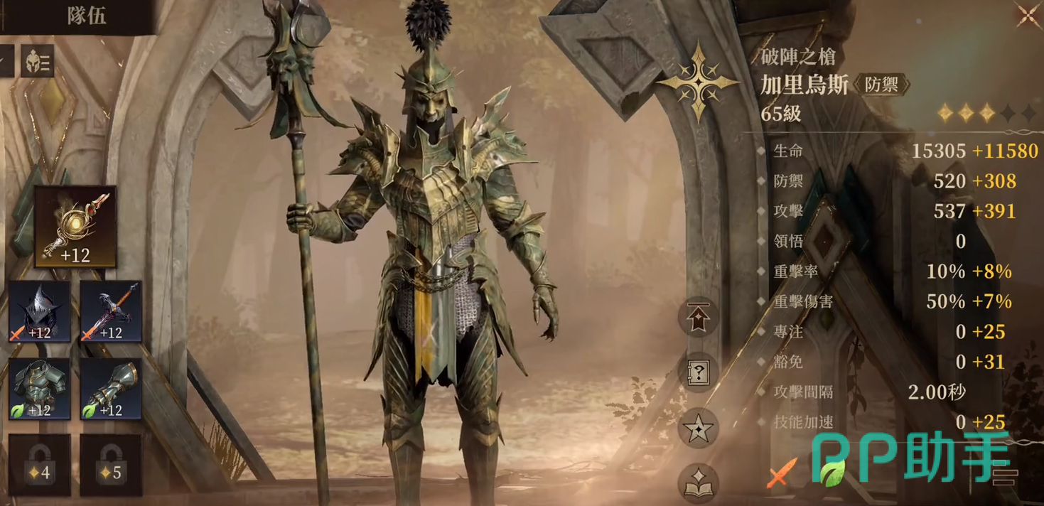 阵容组成:加里乌斯+菲洛希亚+拉瓦+葛尔芬+布莱丁。