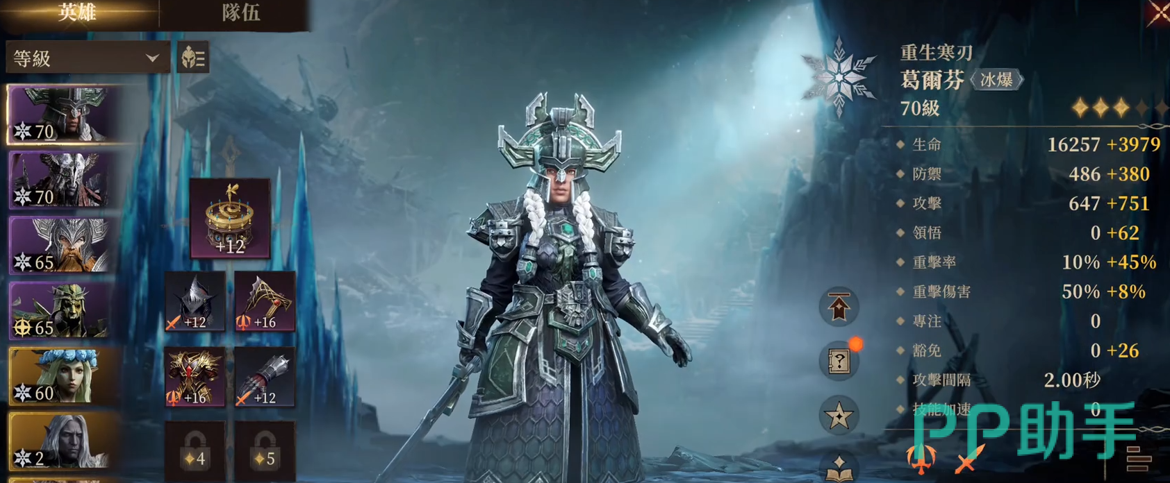 首先冰爆与寒霜属性的英雄都有一定程度的combo,这一阵容携带的拉瓦、葛尔芬、布莱丁都是较为平民的选择,有技能上的互助。