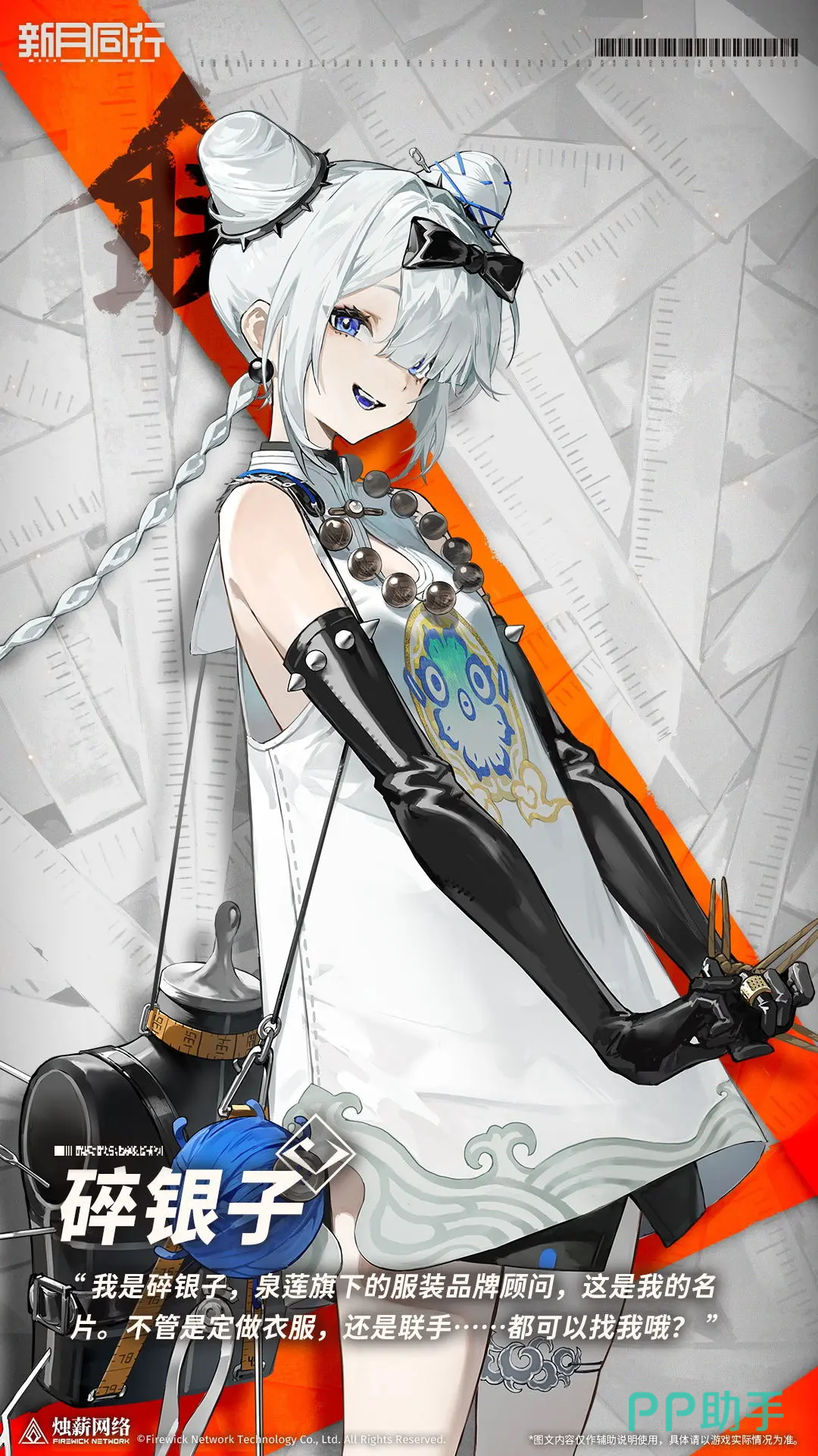 先看一下这个角色的背景,碎银子在一个制衣匠家庭出生,是已经解散了的帮会“藤帮”的其中一个创始人,由于和其他的成员产生了分歧,所以接受了全联堂的招揽,所以她是全联堂阵营的角色,同时也负责泉莲集团旗下的服装品牌。她是一个六星品质的角色,立绘十分的古灵精怪,是可爱又炫酷的少女一枚。在能力方面自然也是十分突出。普攻可以根据个人的攻击力选定敌人造成特殊伤害,而且有一定的几率根据自己的攻击力给对手添加持续伤害的效果。