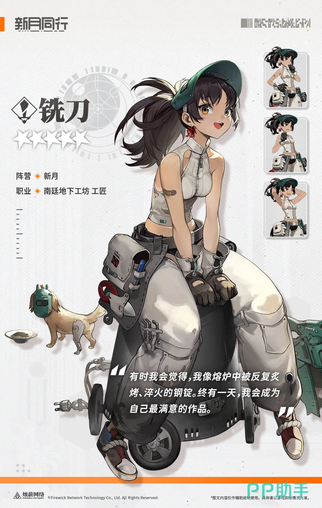 铣刀是游戏中一个充满的活力的五星角色,作为新月阵营的角色,她的独特技能机制赋予了她强大的作战威力。普攻能选中敌人并造成140.23%的物理损伤,如果本次命中发生暴击,那么她还可以给自己添加一层“兔子螺母”的效果,该效果能叠加,上限为五层。战术技能释放后,能对所有课选中的目标均造成基于自身攻击的223.01%物理伤害,每打出一次暴击,就可以给自己增添一个“兔子螺母”。