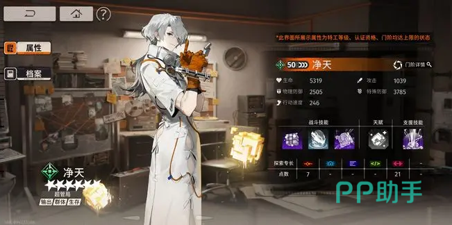 然后面板最下方有一个探索专长点数,根据主线或者支线副本所需要的点数来合理配对,让自己的解锁速度能够快一点。技能面板的话,里面除了支援技能和其他技能的升级材料有不同之外,没有什么特别的地方,该升级就升级就行。