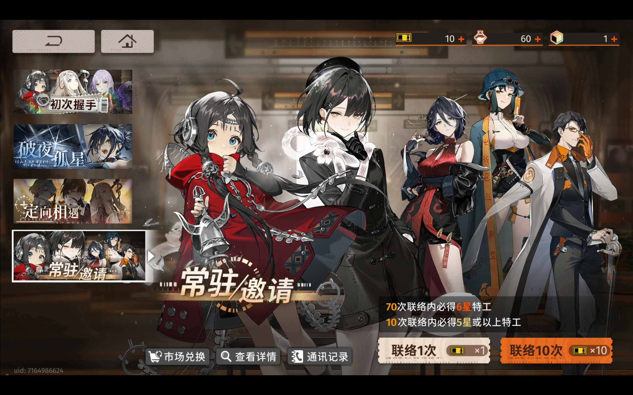 游戏内的招募方式大体分为了四种,第一种是最基础的常规招募,这个模式中卡池的角色比较固定,里面包含了各种不同星级、不同类型的角色,你可以在相关的界面内,查看到之前的招募记录,平台还添加了保底机制,抽到一定次数之后,就必得一个高星级角色。