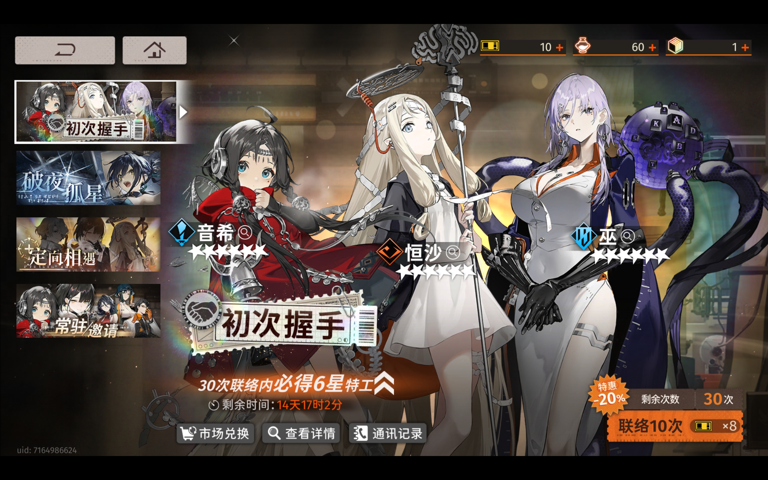 第二种方法是面向刚入坑的新手,玩家在此卡池进行抽取可享受一定优惠,比如抽卡有折扣,并且有30抽必出六星的福利,大家刚进入游戏时,可以优先考虑在此卡池抽取角色,快速组建起自己的初始队伍。