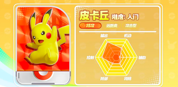 皮卡丘在该游戏当中是一个入门级难度的宝可梦精灵,其主要定位以攻击型和远距离作战为主,输出达到了四颗星,控制达到了三颗星,在普通攻击状态下连续使用三次可化为强化普通攻击,能够对敌方宝可梦进行麻痹,并使其移动速度和攻击速度快速下降。而该角色还有一大特性就是静电,它可以直接使对方宝可梦陷入麻痹状态,而且在每次发动该特性的时候需要间隔一段时间。