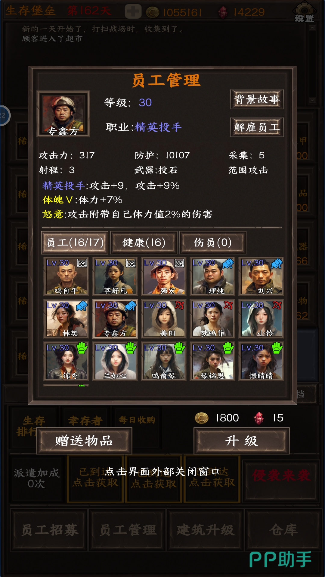 通过招募员工,可以让自己的发展更为迅速,外出收集时也能更加的安全。比如游戏中也有射手,盾等角色定位,通过合理的排兵布阵可以帮你赢下一场场的对抗。一定要与其他幸存者建立良好的合作关系,这样才能实现长久的共赢,各种随机事件非常多哦,看你怎样选择!