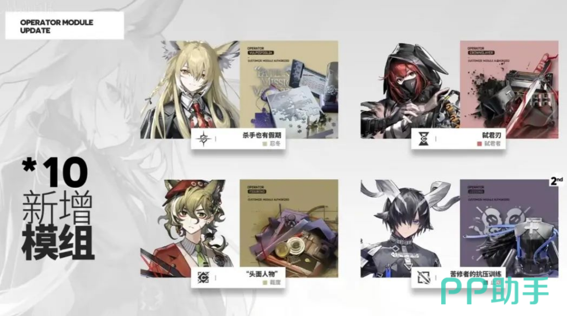 周年庆活动还增加了大量模组,其中巫役子职业获得了新模组,而异格拉普兰德、忍冬和弑君者更是自带模组加入战场。值得一提的是,止颂即将迎来她的第二模组,进一步提升了她的作战能力。此外,洁哥和迷迭香还将迎来肉鸽模式的专属模组,为喜欢肉鸽挑战的玩家带来了更多选择。