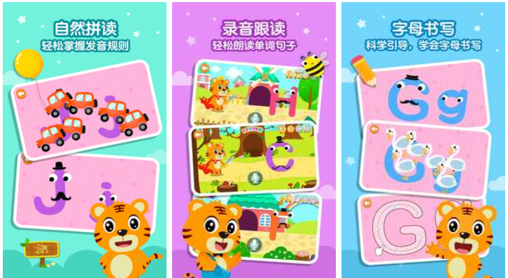 贝乐虎英语也是专门给低龄孩子打造的英文学科学习类益智神作,玩家要进入英文单词组成的世界与可爱的小老虎一起冒险,沉浸式学习英文字母和单词的游戏体验让小孩的记忆力水涨船高,点触式的简单操作没啥难度也符合小朋友对于游戏的需求,可爱生动的画面表现更有亲和力同时能吸引更多小朋友的目光。
