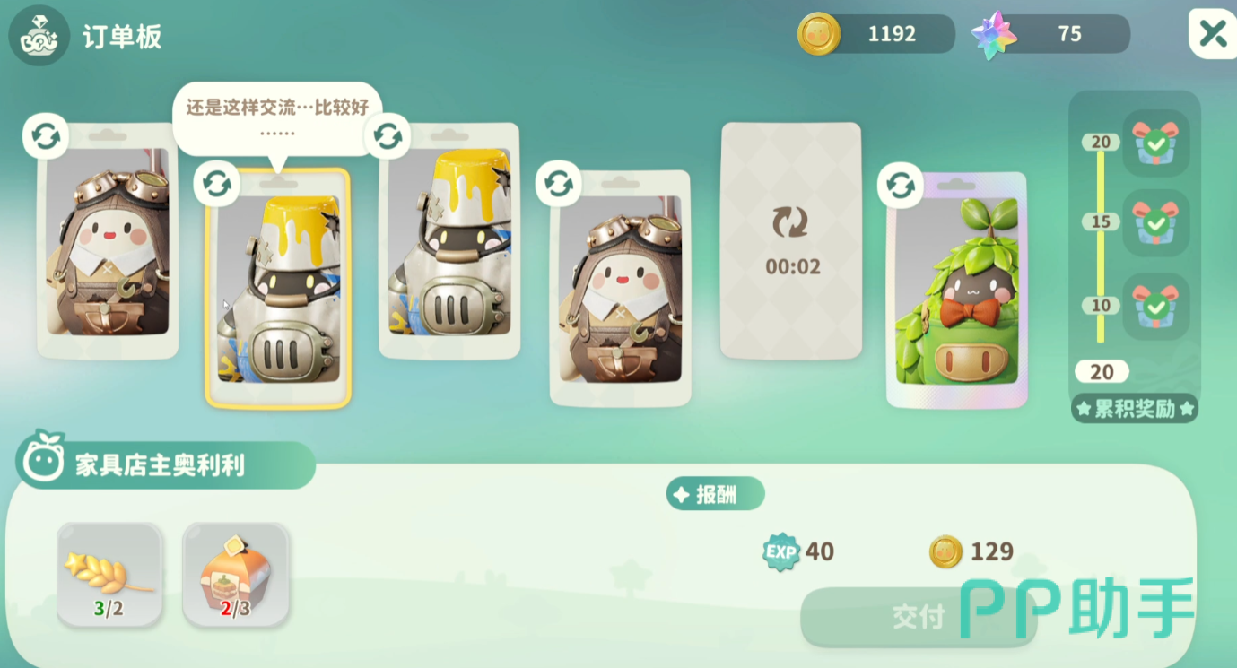 订单玩法的话,顾名思义就是为玩家提供各种订单。你要按照订单完成金主们的要求之后,就可以获得足够数量的金币或者其他道具奖励。如果你累计完成了多个订单之后,还可以获得累计奖励,每个订单的要求和雇主都不一样,并且会随机刷新。