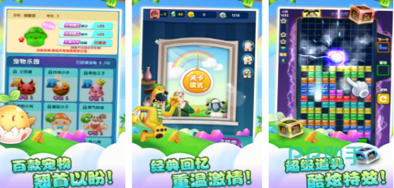 乐游方块消除是比较经典的单机游戏,游戏凭借着经典的画面,成为了众多人的童年回忆。此游戏拥有着多种不同的玩法,比如上推模式以及掉落模式等等。每一种模式的方块出现的方式都完全不同,比如掉落模式,方块会从屏幕上方不断掉落,而玩家只要将方块放在准确的位置就能快速消除。随着关卡的不断升级,方块掉落的速度也会越来越快。