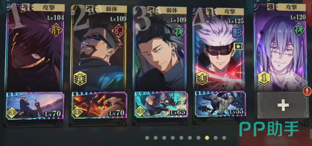2、阵容搭配:在角色选择方面,建议大家选用【不完全的领域】伏黑惠来进行附加易伤以及后边的补刀,然后选用【教育者】夜蛾正道(简称校长)进行高覆盖率的体术伤害加成,选用【为了保护非术师】夏油杰(简称夜夏油杰)进行高效的补刀,体术意伤赋予以及必杀的爆发,最后选用【最强】五条悟进行持续的大量体术伤害输出及补刀。