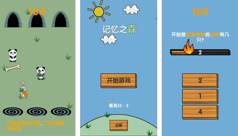记忆之森是非常适合玩家去锻炼自己脑力的一个游戏,在这个游戏里会有简单的卡通画面,展现出一个充满奇幻色彩的冒险之旅,在这个森林里会遇到大量的动物,每一个动物都会带着一个谜题,玩家需要通过和他们充分的互动收集线索,解开谜题,在游戏里还会涉及到一些记忆玩法设定,还需要仔细观察场景里的一切设置,这样才能在关卡结束之后顺利回答出上一个场景中的动物数量。