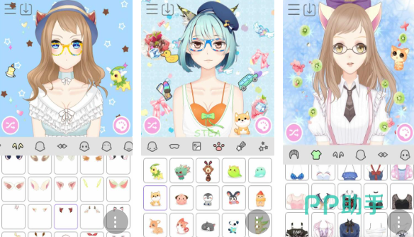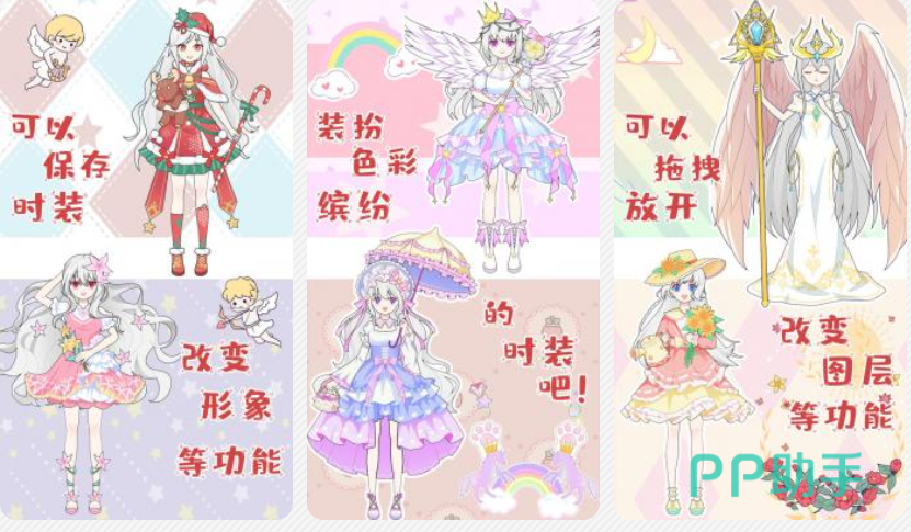 游戏中的服装主要以萌的造型为主,玩家通过点击服饰来给卡通女孩换装打扮,游戏中打扮的非常的全面,包括了头发、头饰、衣服、眼睛、鞋子等,在换好之后玩家可以将装扮保存下来观赏,游戏的特色就是每一个饰品都可以让玩家自由的捏造,超高的自由度让很多玩家都非常喜欢这个游戏。