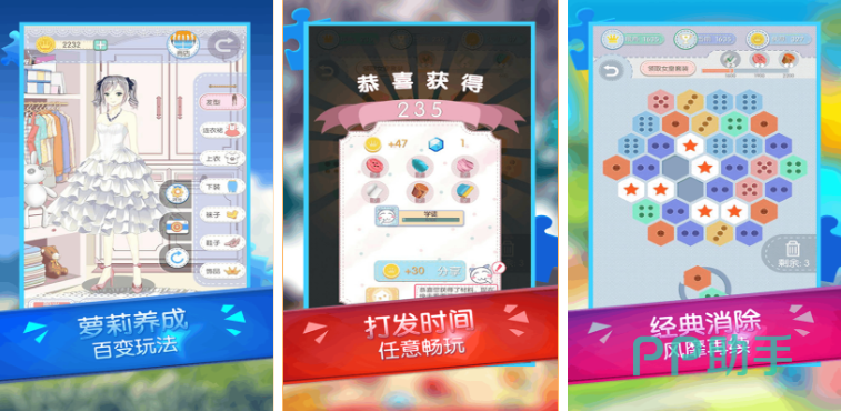 游戏中玩家需要消除掉六角纽扣来获得服装材料,然后利用这些材料来制作服装,游戏中的角色非常多样,玩家根据角色的形态来进行穿衣的搭配,每一个角色会提出自己的需求,需要根据角色出场的场合和穿搭的要求来制作服装,角色中还有养成系统,通过换装和角色的培养,最终遇到自己的命中天子。