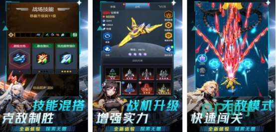 利用指尖触控屏幕移动飞机,做比敌人攻击的同时,还要将敌机打败。游戏中有着极其丰富的战机任由选择,每个都带有炫酷的技能特效,给你带来真实畅爽射击体验。每款战机都有着非常炫酷的技能,可以驾驶飞机自由在天空中翱翔,通过不断闯关的方式获得丰厚奖励,让战机逐渐升级,拥有更彪悍的战斗能力。