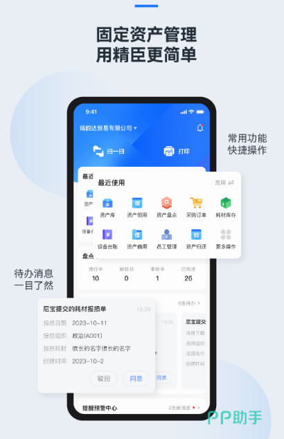 这款轻量是固定资产管理应用,可以给大家带来诸多的资产管理解决方案,无论你是个人还是企业都提供资产列表以及资产入库等功能,想要对各种内容进行打印的话,也提供打印机功能。在资产总数方面,主要就是会显示闲置的资产以及在用的资产和借用维修等,让大家通过这一款软件直接就能了解哪些属于借用的资产或者是闲置可以使用的。