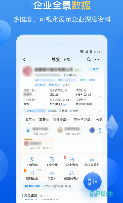 在这款能帮助进行企业管理的应用中,不仅可以对企业资产进行管理,也能对企业的预警进行提示,通过人工智能的方式利用大数据的方式对各种企业的风险进行管控。如果你也想要了解自己企业的具体情况,个人资产是怎么样的,都可以在这款应用当中了解财务数据,甚至是评级记录,企业融资等相关的内容,完全都能进行监控。