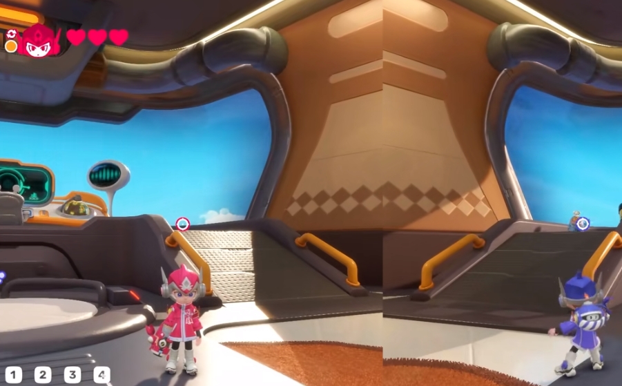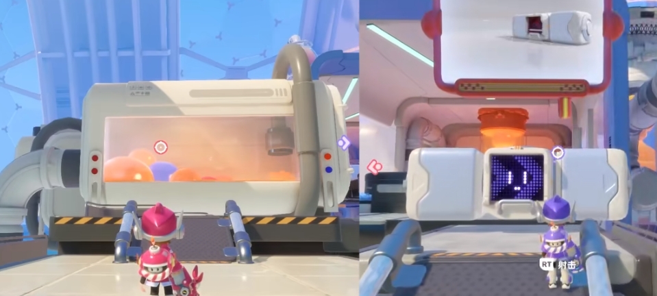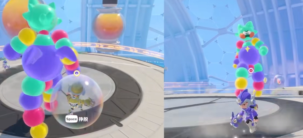别看游戏的过程很欢乐,想要顺利通关还需要解决关卡最后的boss,每个关卡的守关boss形态不一,但是核心攻击原理还是攻击它身体上的泡泡,有些boss会有坚硬的机械外壳,那就需要玩家先击碎它的外壳,让它的气球暴露出来,这样就能成功击杀了。如果玩家们在闯关过程中调到中转台上,遇到方块机械怪,那躲避是唯一的破解方式,当然两个队员之间的配合也很重要。