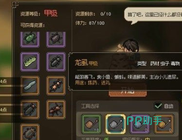看到这种岩石之后大家需要走过去进行互动,之后就可以对岩石进行探索,也就是抓虫子,在这个抓捕过程中,就有概率抓到龙虱了,注意一下,是有概率,不是百分百会出,因此大家需要多去抓几下。