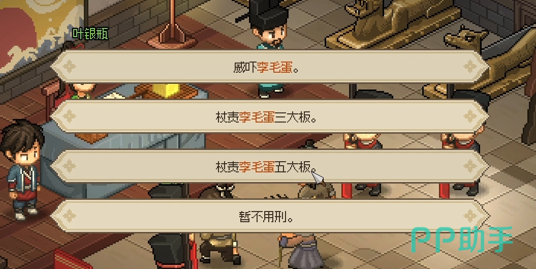 在这个剧情里面我们会和叶银瓶碰到,先开始我们会看到知府审案,但是这位糊涂的知府审案子的水准是非常差的。叶银瓶自高奋勇之下就接下来帮忙审案的任务。之后玩家们需要帮助叶银瓶正确判案才可以。